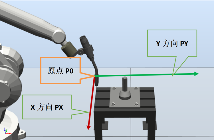 注意:P0Px和PxPy两条线相交为90°且右手四指从X轴向Y轴方向握,大拇指应当朝上。