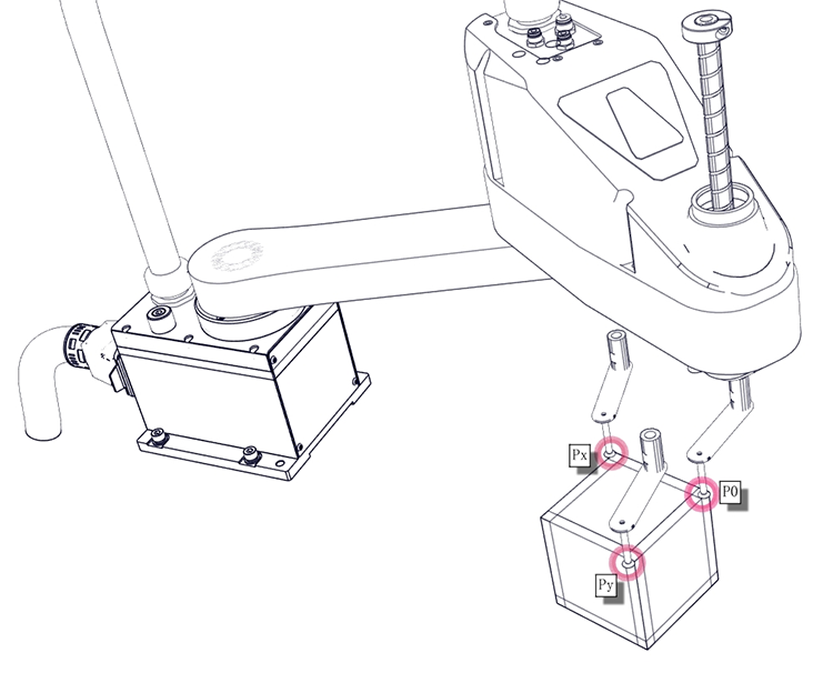 注意:P0Px和P0Py两条线相交为90°且右手四指从X轴向Y轴方向握,大拇指应当朝上。