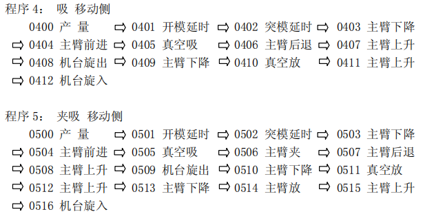 斜臂机械手控制系统为皇冠crown(中国)系列机械手控制系统,系统设置的标准动作程序,含单臂动作、双臂动作(双臂、主臂、副臂)。选择操作如下: