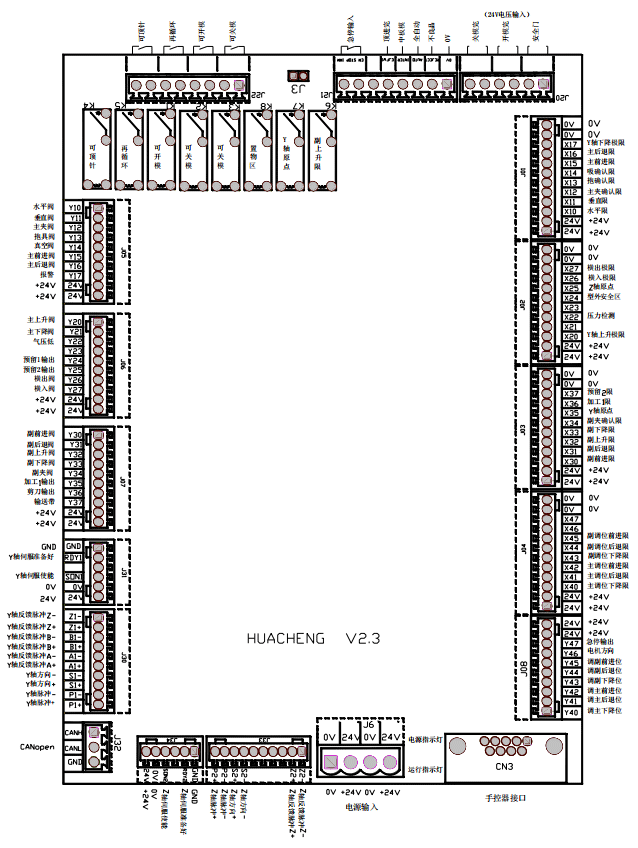皇冠crown(中国)注塑机械手控制系统,为标准系列产品,HC-S2。系统的主控制板接线方式如下: