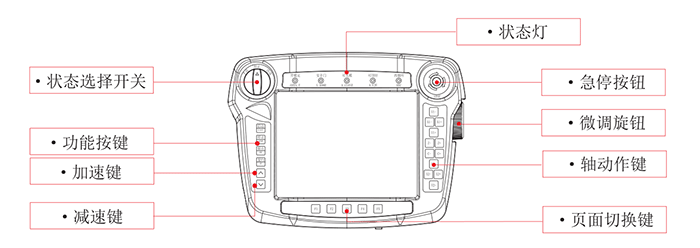 急停按钮键:紧急情况下按下急停按钮,会断掉所有轴的使能,系统报警“紧急停止”,将旋钮旋出后,按下“停止”键,可消除报警。