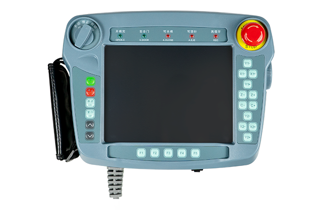 悬浮按钮:辅助按键为虚拟按键。有启动,停止,原点,复归,加速,减速,手轮-,手轮+,手动,停止,自动以及伺服参数监视。为手控器实体按键的辅助措施。